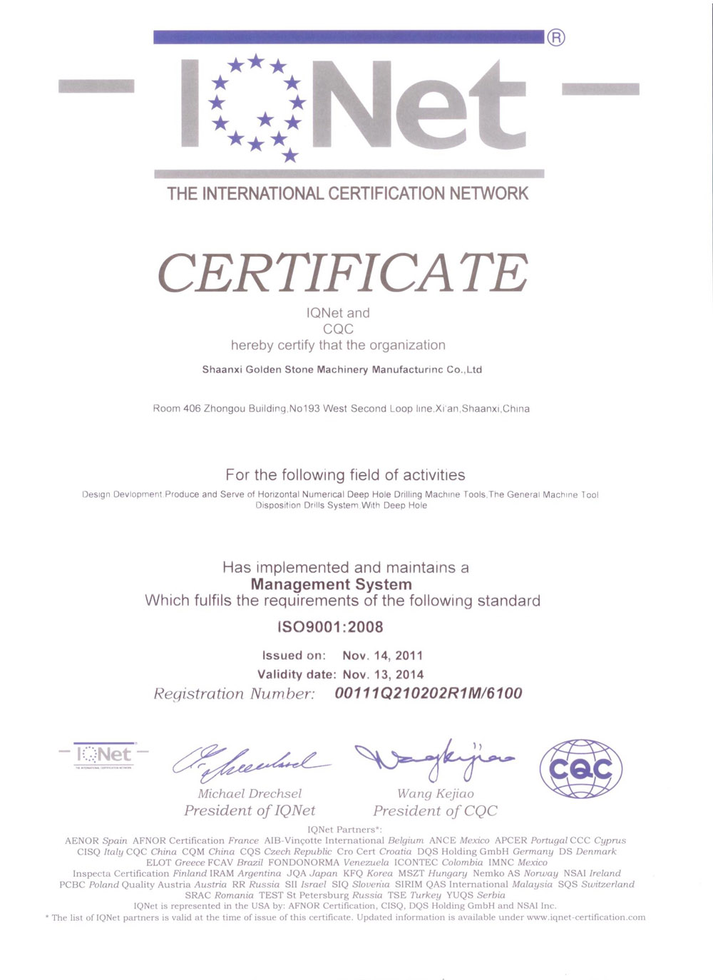 質(zhì)量管理體系認(rèn)證證書(英文版) 質(zhì)量管理體系認(rèn)證證書